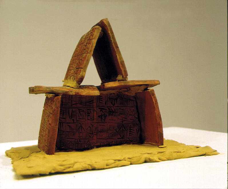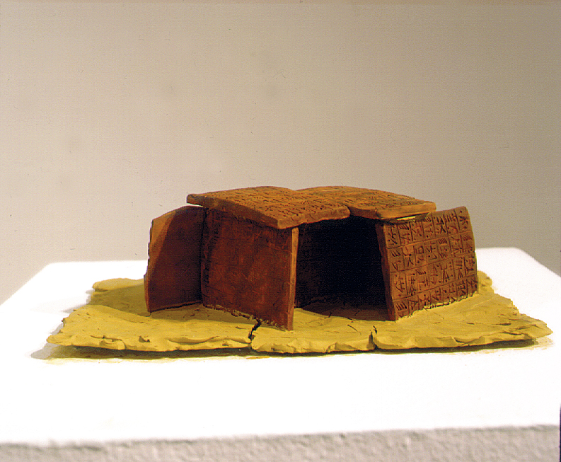 Az „Égi Házak” c. művek égetett (tűz) és égetetlen agyakból (föld, sár) készültek. A „falak” Gilgames könyvének lapjaihoz hasonlatosak, az építmények formája pedig egymástól távol eső kultúrák jellegzetes építményeinek alakját idézik, mondhatni építészeti archetípusoknak tekinthetők.