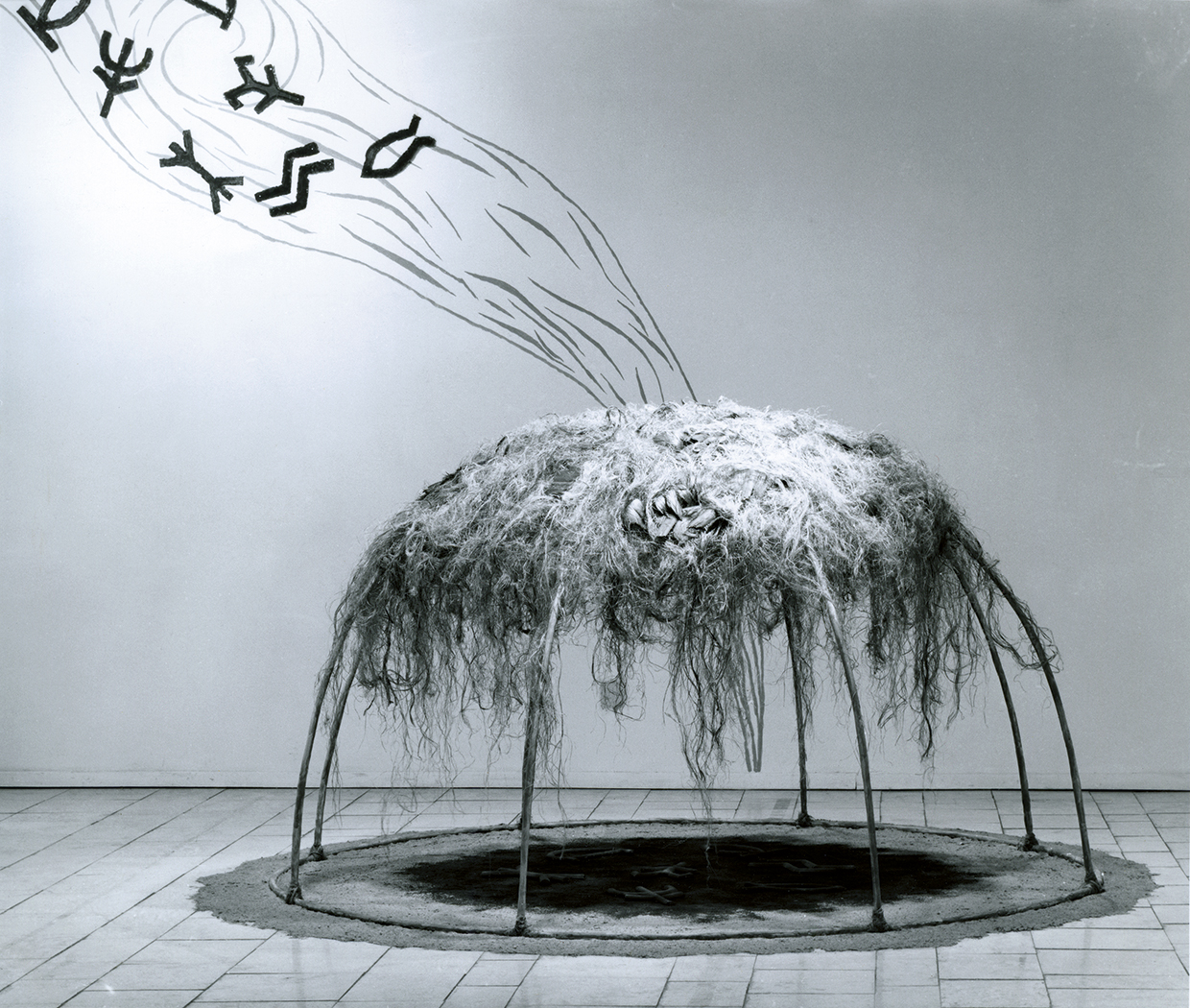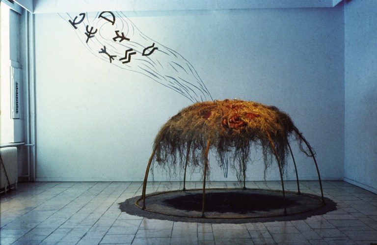 december 26, 2018november 19, 2019 Elő-jelek Elő-jelek, 1990 installáció, vegyes technika 400 x 250 x 250 cm részlet