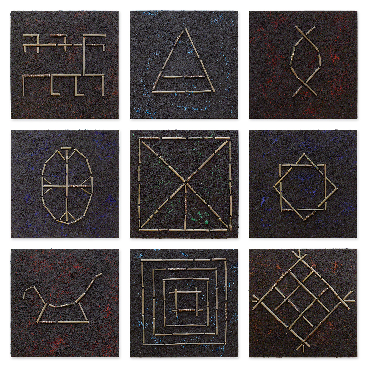 Life Memory, 2007 kompozíció 9 részből, vegyes technika, 50 x 50 cm/dbLife Memory XI., 2007 részlet a sorozatból, vegyes technika, 50 x 50 cmLife Memory X., 2007 részlet a sorozatból, vegyes technika, 50 x 50 cmLife Memory VI., 2007 részlet a sorozatból, vegyes technika, 50 x 50 cmLife Memory, 2007 kompozíció 12 részből, vegyes technika, 50 x 50 cm/db